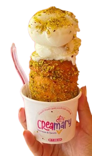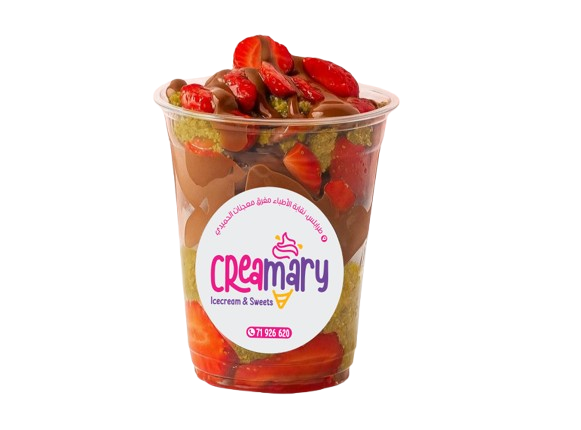Crunchy Esmaliye, rich chocolate and fresh strawberries with two layers of creamy ice cream, creating a delicious Dubai-inspired treat in every bite.